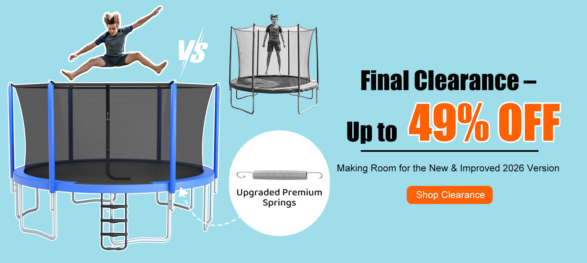 The SkyBound Springless Trampoline is one of the safest trampolines on the market. Instead of traditional metal springs, it uses high-quality bungee cords that offer 4 times the lifespan and superior bounce performance compared to conventional trampolines.