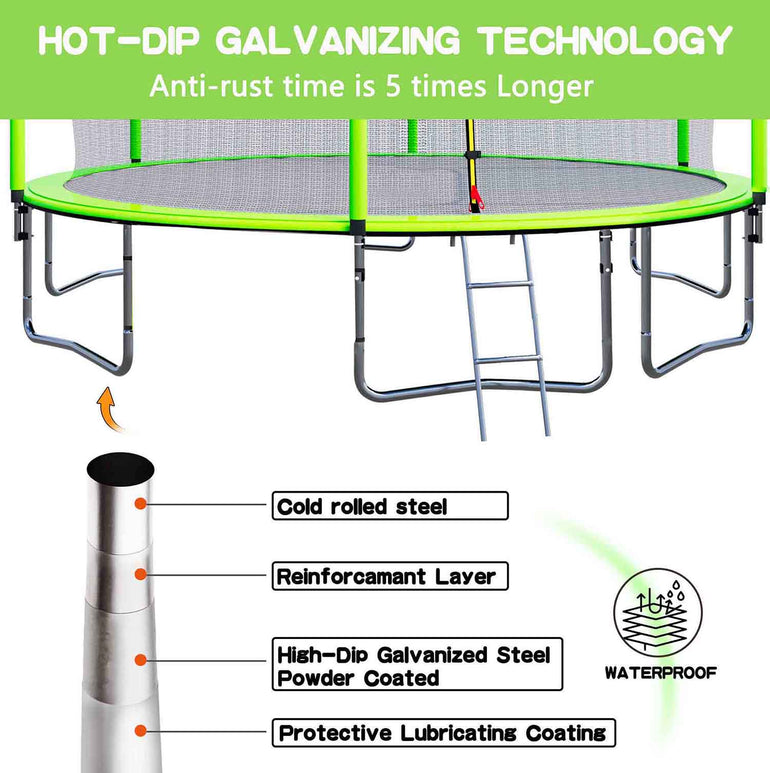 All of our trampolines come with detailed manuals and video tutorials. Typically, two adults can complete the installation within two hours. Some models also feature a "quick-install enclosure system" for even easier setup.