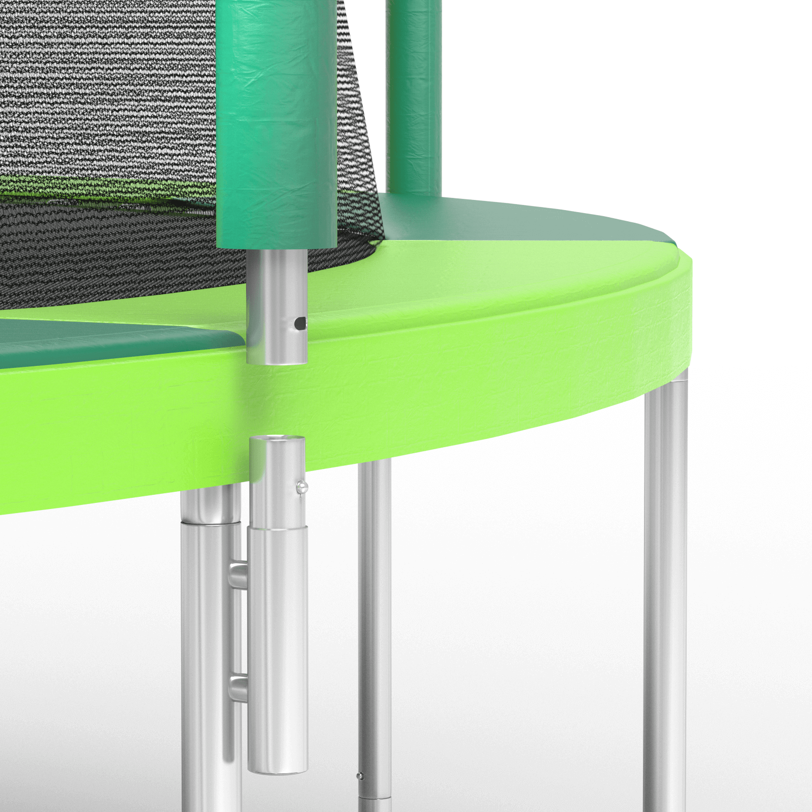 SkyBound trampolines simplify pole installation—just insert the enclosure poles into the sockets on the frame and fasten with screws.