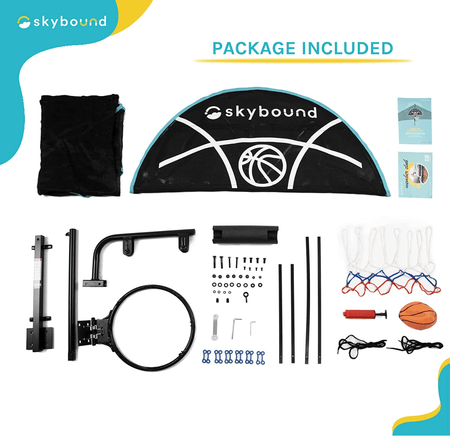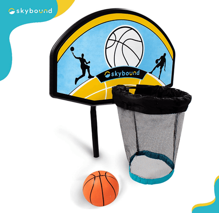 SkyBound Trampoline Basketball Hoop Attachment with Mini Basketball and Pump - Premium