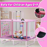 The thick foam padding fully covers the support poles to prevent bumps, while the jumping mat is securely stitched to the spring cover, keeping little hands and feet away from the springs. This thoughtful design ensures worry-free playtime and peace of mind for parents.