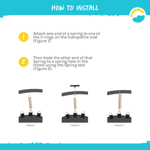 - IMPORTANT: Prior to purchasing, measure your original springs from hook end to hook end, disconnected from your trampoline, and completely unstretched. For more information, please refer to our Spring Measuring Guide, or contact us directly at (888) 891-4689.